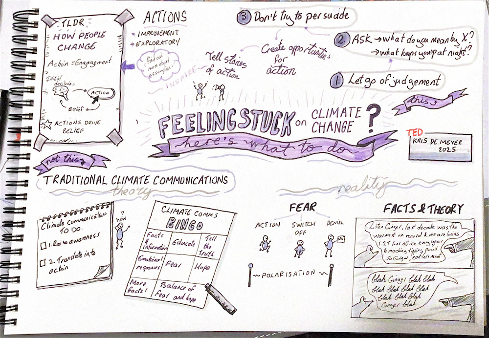 Kris de Meyer’s excellent Ted Talk summed this up beautifully as he playfully described ‘Climate Bingo’. I recommend you take a listen but I had a go at summarising it visually here: